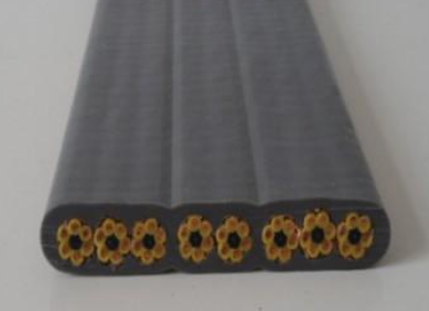 扁型橡套電纜、扁電纜、扁平軟電纜以及扁平電纜是按照Q1320282、AQ001-91標準組織生產,適用于交流額定電壓450v/750v及以下的移動式電氣設備中,橡套扁平電纜扁形結構特別適用于頻繁彎曲的場合,不易扭結,如起重機、行車等。橡套扁平電纜導電線芯采用軟結構,確保電纜柔軟性能好。橡套扁平電纜絕緣和保護層材料采用丁聚物,提高電纜柔軟特性和防腐、耐寒特性。絕緣線芯分色,為敷設安裝提供方便。橡套扁平電纜可按顧客需要,在纜芯兩側增加鋼絲繩或其他承力元件。